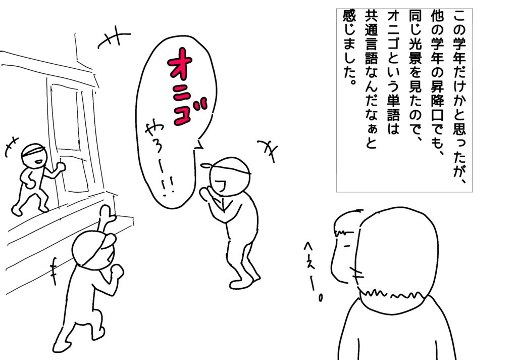 2回目の成人式を目の前に仕事や子供、世の中に翻弄される日々を記す めんこいものが好き 40代の理学療法士です。男2人を育てながら、育児や仕事で思ったこと・経験、そして副業など臨時収入を増やすべく奮闘する日々を記しています。 めんこいものが好きをフォローする そこまで略す?! 育児 X Facebook はてブ Pocket LINE コピー 2026.02.04 先日、子供の参観日に行った時の話です。 親と一緒に教室から飛び出し、各々遊びたい場所へ急ぐ子供達… 帰路に向かう私も途中まで一緒に進んでいました。 最初の聞き違いと思いました。 ワンチャン、レベチ、タイパ、ちるいなどなど現代には略語が溢れていますが、 それは、子供においてもそうなんですね。 誰が1番最初に言い出したんですかねー。 他の学校に通う友人の子供にも聞いてみましたが、やっぱりオニゴと言うらしいです。 こんなところにも時代を感じた40代でした…。