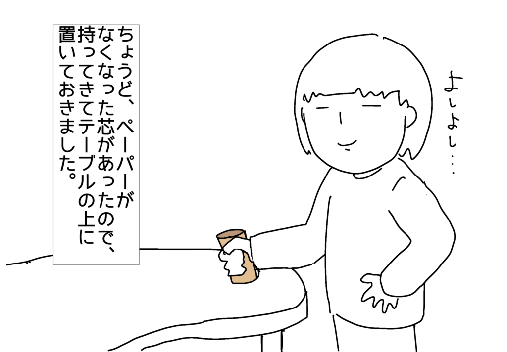 うちではトイレットペーパーの芯の代わりにラップの芯を切って代用しています。