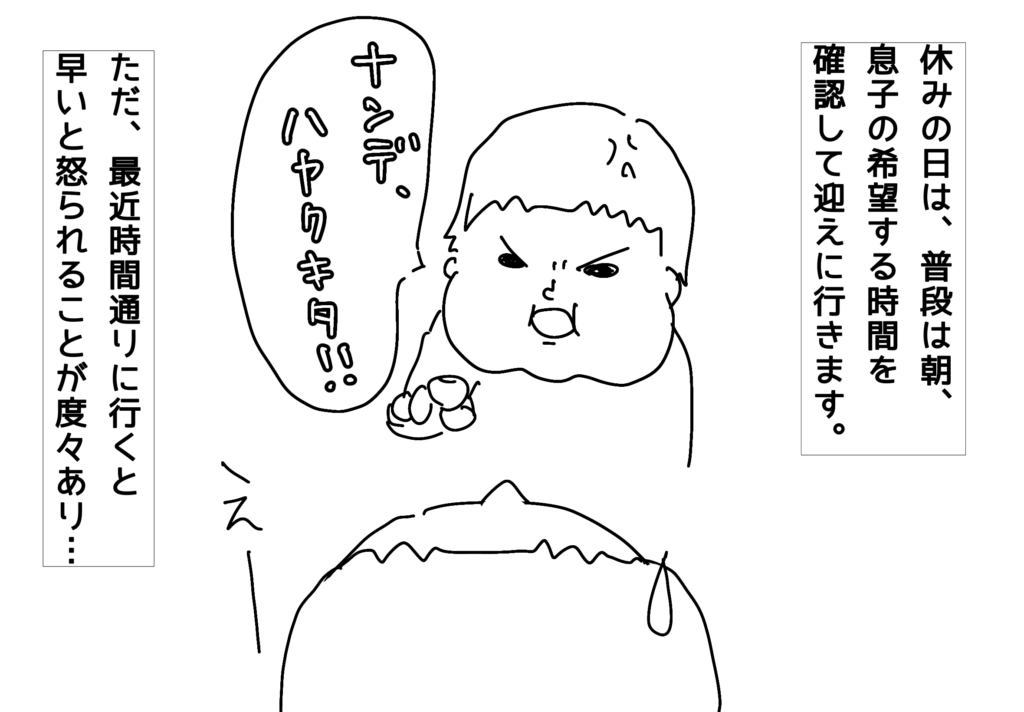 もう毎回怒られるので、迎えは仕事終わりに行く時間に固定することに。