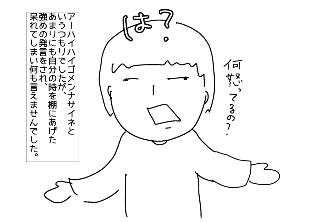 睡眠不足も続いていたので、イライラと落胆が激しくも何も言えませんでした。