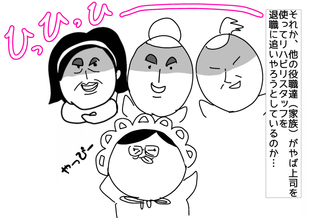 この会社はリハビリできることが売りですが、経営的にはリハビリしても収入がそんなに上がるわけではないので、ストレスを与えて、辞めさせて人材カットしたいのか…??