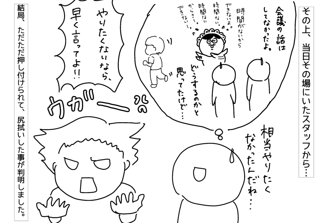 そもそも会議があったら事前に伝えといてくれよ!とは思いましたが、忙しい日だったので、あまり突っ込まずに交代しました。