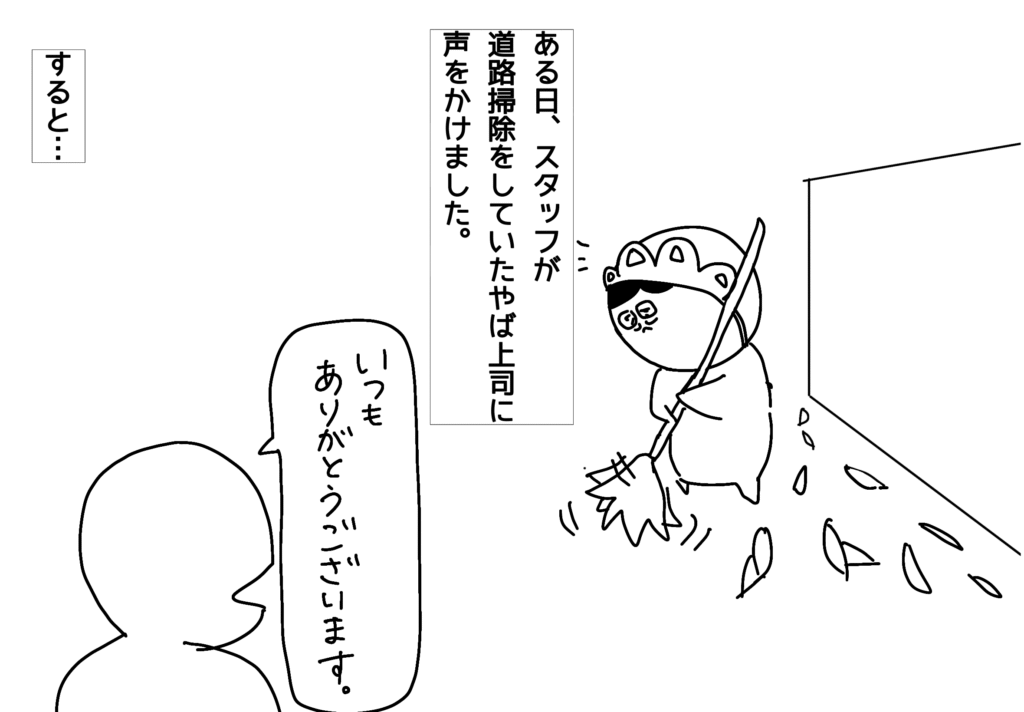 やば上司は普段何の仕事をしているのか、全然わかりませんが、作業着をきて片付けや掃除している姿をよく見かけます。