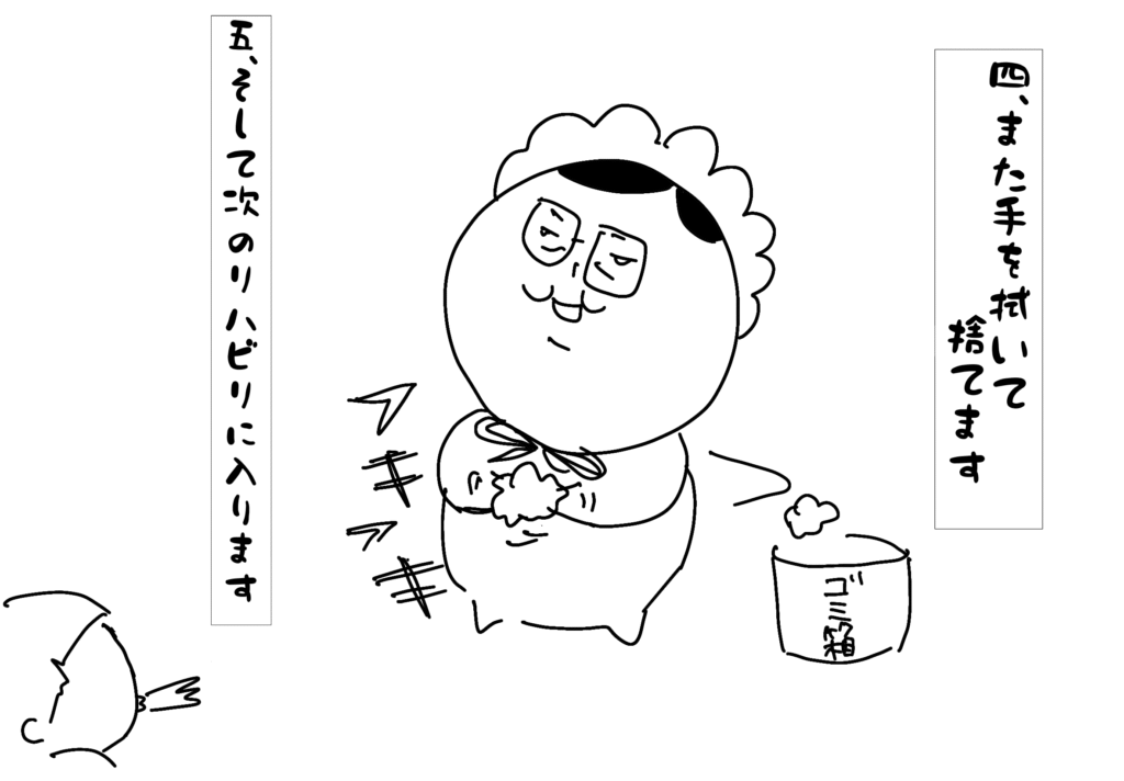 汚れを拭いたペーパーで手を拭くのも嫌ですし、それで次リハビリの対象だったら体を触ってほしくない!と思いません?